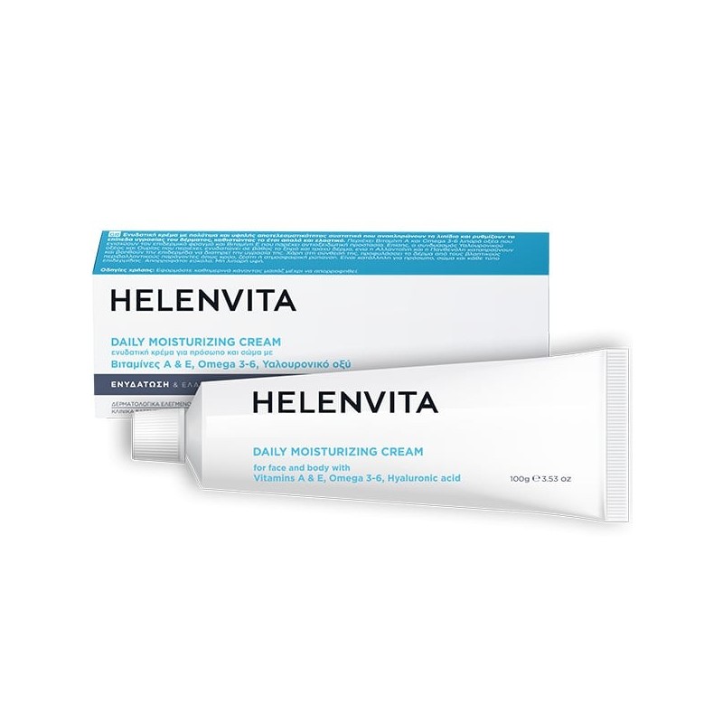 H HELENVITA CREAM 100 gr, περιέχει πολύτιμα και υψηλής αποτελεσματικότητας συστατικά που ρυθμίζουν το περιεχόμενο λιπιδίων και υγρασίας του δέρματος και το καθιστούν απαλό και ελαστικό. Βελτιώνουν την υφή του ξηρού και λεπιδώδους δέρματος και το προφυλάσσουν από τις βλαπτικές επιδράσεις του περιβάλλοντος (κρύο, ζέστη, ατμοσφαιρική ρύπανση). Χάρις στην απαλότητα της σύνθεσης της είναι κατάλληλη για όλους τους τύπους δέρματος.