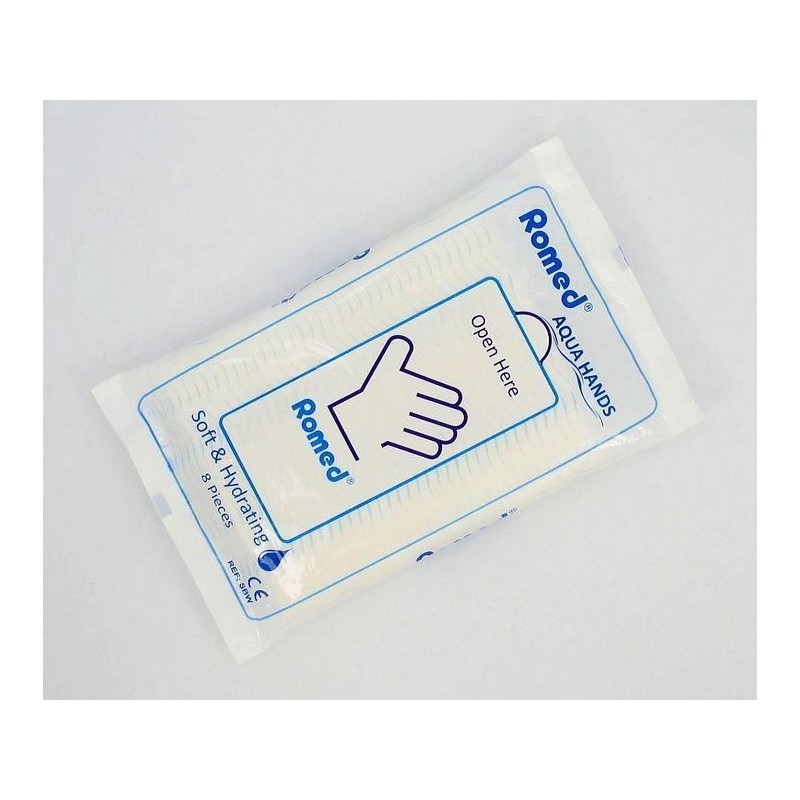 Τα γάντια πλυσίματος ασθενών Romed Aqua hands σας απαλλάσσουν από τη χρήση λεκάνης, αφρόλουτρου και νερού. Είναι εμποτισμένα με ήπιο σαπούνι για τον γρήγορο και εύκολο καθαρισμό του σώματος. Έχουν ευχάριστη οσμή, είναι έτοιμα προς χρήση και θερμαίνονται εύκολα και γρήγορα (σε μόλις 20 δευτερόλεπτα) στο φούρνο μικροκυμάτων πριν τη χρήση, αν αυτό κρίνεται απαραίτητο.