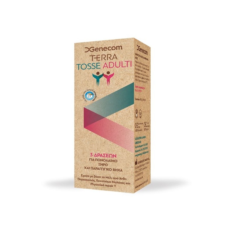 Το Terra Tosse Adulti είναι ένα ιατροτεχνολογικό προϊόν που βασίζεται στο Phytoclad repair®, μέλι και φυτικά εκχυλίσματα, αποτελεσματικό στη θεραπεία του βήχα, τόσο του παραγωγικού όσο και του ξηρού, που σχετίζεται με ερεθισμό του στοματοφαρυγγικού βλεννογόνου και συναφή συμπτώματα σε άτομα ηλικίας 12 ετών και άνω.
